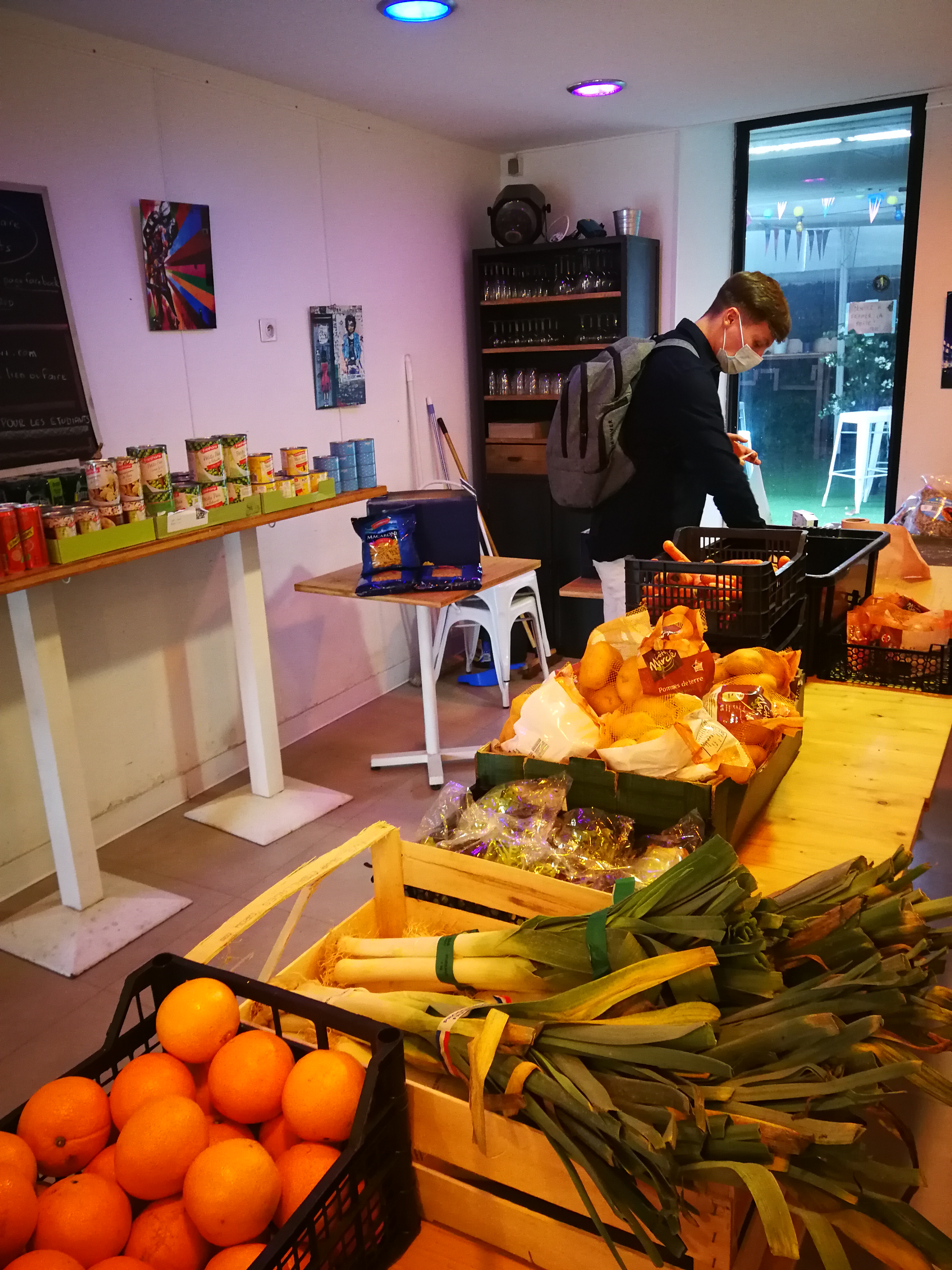 À la suite de quoi la première distribution de denrées de première nécessités aux étudiants sera faite. Dès la deuxième distribution et pour resserrer le lien avec les étudiants, Frédéric propose des recettes toutes simples pour utiliser les denrées fournies (tarte poireaux chèvre, sauce tomate maison…).