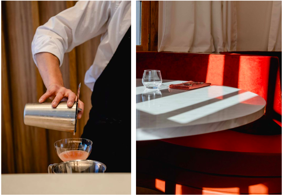 Pour la petite histoire, l’espace où se situe aujourd’hui le restaurant était anciennement un espace de bureaux au cœur du quartier des femmes de la prison. Cependant n'ayez crainte, vous n’allez pas déguster votre repas dans un décor sombre et glauque, mais plutôt dans un bel espace à deux pas de la Calanque de Morgiou, avec une jolie vue, des matériaux et formes harmonieuses, des rideaux et des couleurs chaudes. Un vrai espace de partage et de créativité !