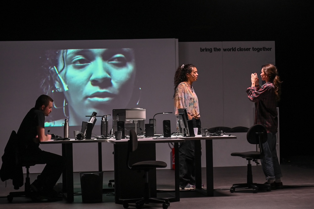 Ici, pas de vidéos trash ni de surenchère visuelle. Le choix est radical : on ne montre rien, on fait ressentir. Les contenus modérés apparaissent à travers les corps et les mots des comédien·nes. Le virtuel devient physique, la violence numérique contamine le réel. Un dispositif scénique épuré, interactif, parfois connecté aux smartphones du public, renforce encore le malaise et l’impact.