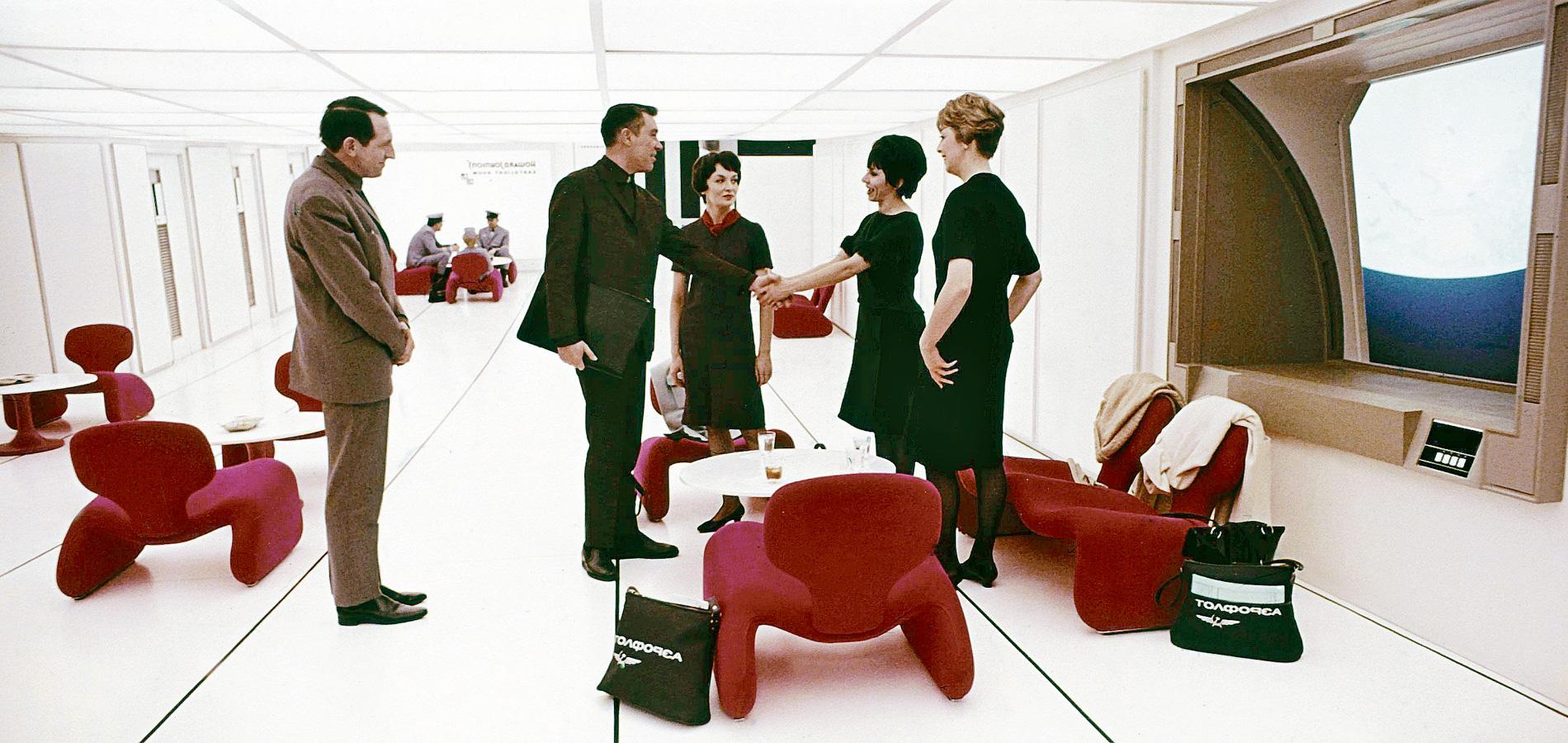 Vous retrouverez notamment les assises de Pascal Mourgue pour le film "2001 l’Oyssée de l’Espace" de Stanley Kubrick, les robes d’Azedine Alaia qui habilla l'icône Grace Jones des années 80 dans le James Bond "Dangereusement Vôtre" avec Roger Moore.