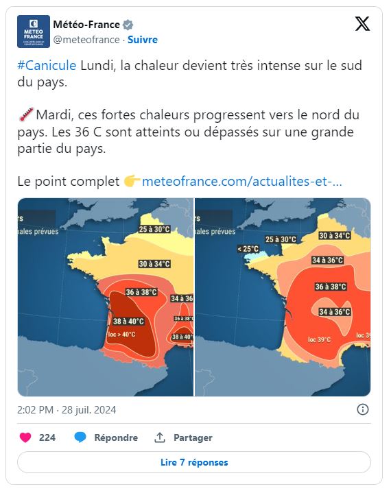 Sortez les clim', les ventilos portatifs, les slips et les tenues légères. À partir de ce mardi, l'un des premiers épisodes caniculaires de l'été arrive à Nantes. Météo France a placé le département de la Loire-Atlantique et la ville de Nantes en vigilance jaune canicule et orage. Entre mardi et mercredi, la température devrait grimper jusqu'à 34°C avec un ressenti à 39°C. Un épisode caniculaire intense mais de courte durée qui devrait s'achever à partir de jeudi avec le retour de températures plus supportables.