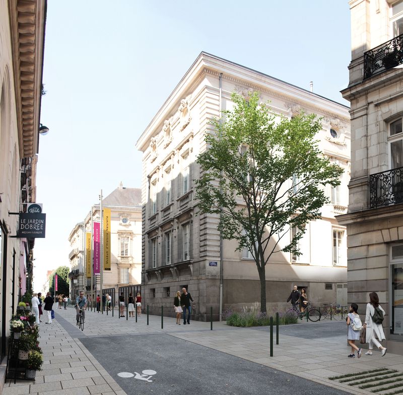 L’idée est que l’on puisse se promener et rouler à vélo en toute sérénité autour d’un de nos quartiers préférés : l’ensemble de la rue Voltaire, de Graslin jusqu’à la rue Flandre-Dunkerque, la place Jean V, ainsi que l’accroche des rues Athénas, Lesage, Gresset, Cadeniers et Hippolyte Durand-Gasselin.