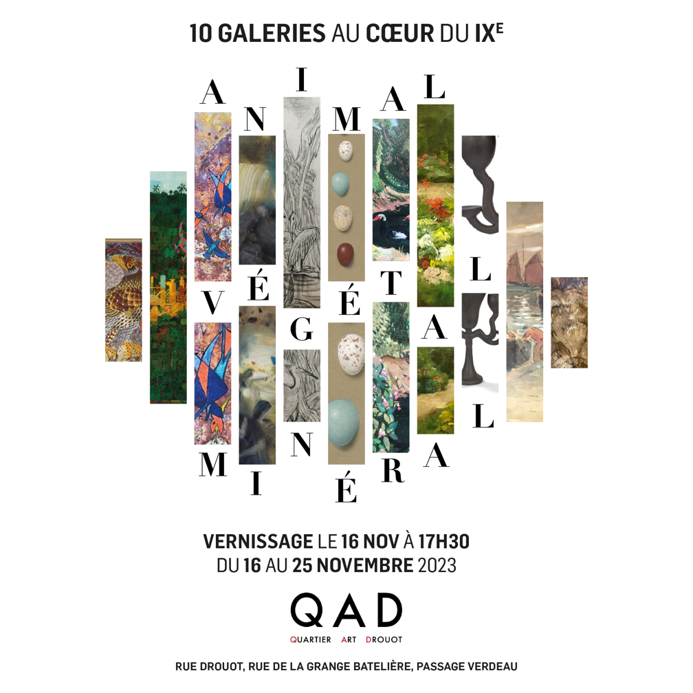 Le rendez-vous des amateurs et collectionneurs de belles œuvres est de retour ! Du 16 au 25 novembre, une douzaine de galeries d'art du 9e célèbreront leur Parcours du Quartier Art Drouot avec un programme riche et varié. Cette année, c’est la nature qui est mise à l’honneur : animaux, végétaux, pierres et autres minéraux décorent le quartier pour nous faire voyager à travers le temps, les continents et les couleurs. L’événement mettra également en relief les océans et la protection du milieu marin en partenariat avec l’association BLOOM, qui recevra une partie des ventes. Un véritable carrefour de rencontres autour de l'art, à ne pas manquer.