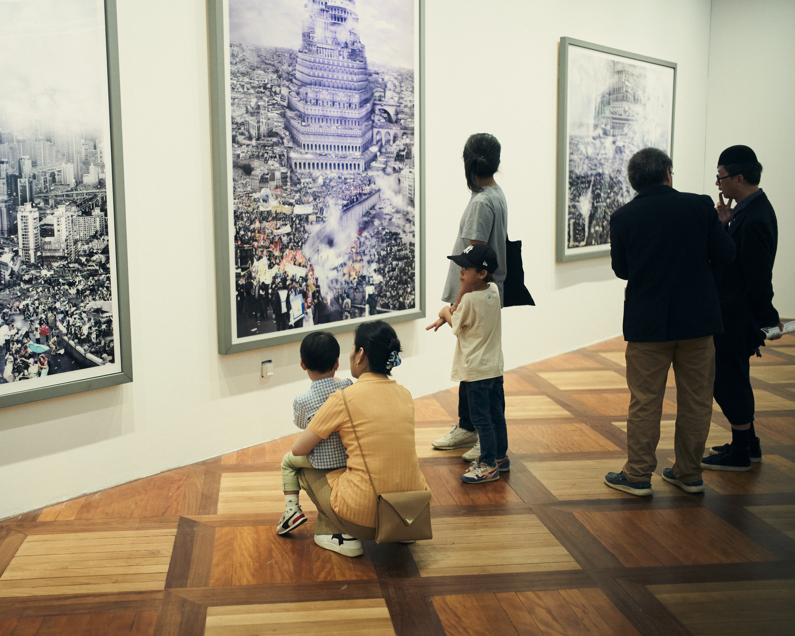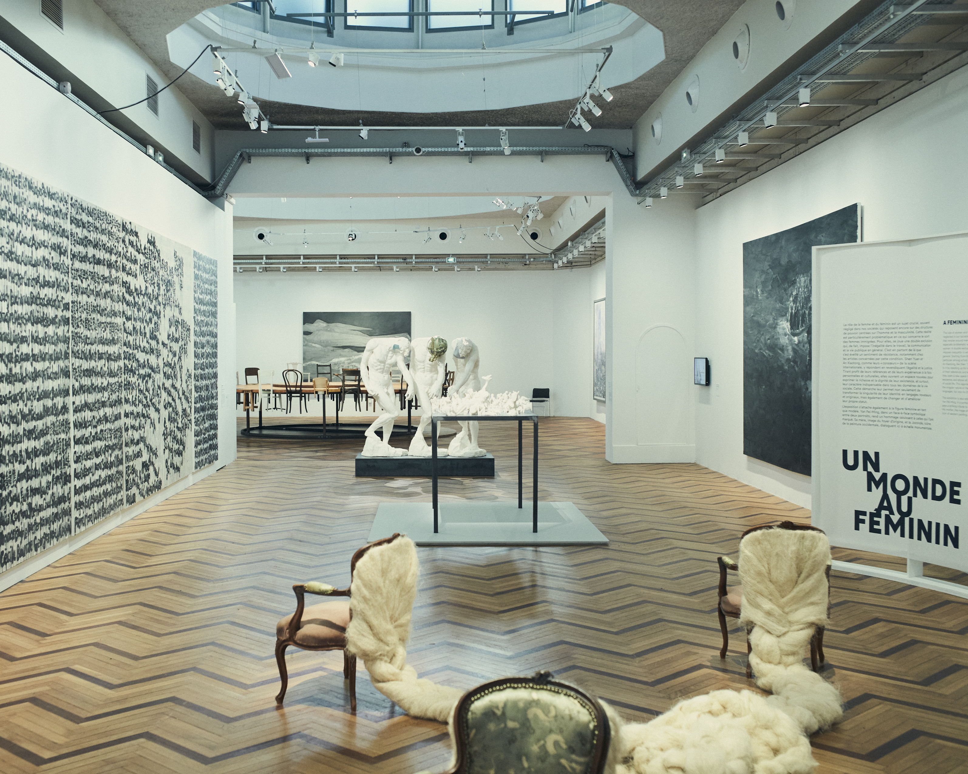 Des unes de journaux géants froissés, des chaises devenues des instruments de percussion, un chevalier des temps modernes surmontant un lion empaillé et tenant en main La République de Platon, des tirages argentiques superposés pour créer une tour de Babel modernes… Toutes ces œuvres témoignent d’une double culture, font écho au bagage asiatique chinois et aux connaissances occidentales françaises ancrées dans chacun·e des artistes.