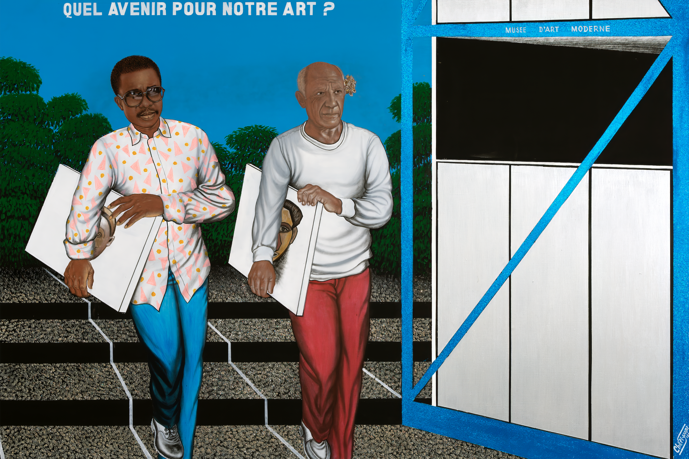 Chéri Samba, Quel avenir pour notre art?, 1997 (Triptyque 2) © Chéri Samba / Photo : Maurice Aeschimann Courtesy The Jean Pigozzi African Art Collection