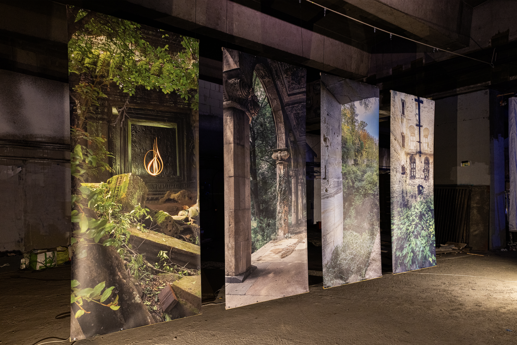 Dès le début du parcours, bande sonore et jeux de lumière vous accompagnent à la découverte de ce lieu intrigant, qui participe au mystère de la Défense. Vous voici au cœur d’une capsule temporelle, où le passé se mêle au futur à travers les différentes installations. Des immenses photographies de créations humaines oubliées envahies par la végétation à la reproduction d’une rame de métro avec des matériaux datant de la construction de la Défense et laissés sur place, chaque œuvre vous invite à la découverte et à la réflexion.