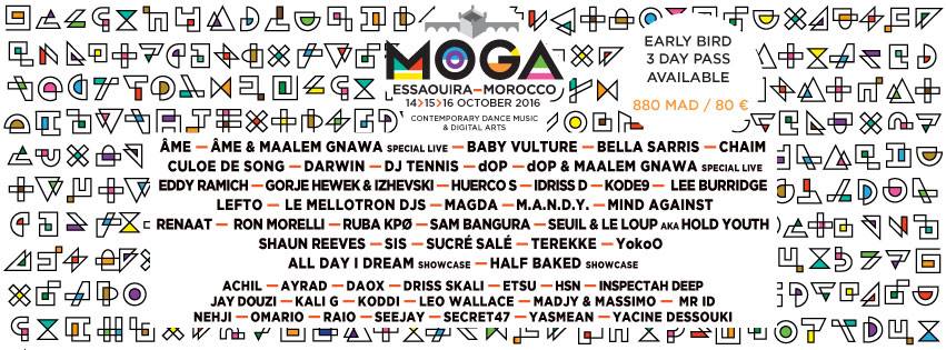 La première édition du Moga Festival t’emmène danser dans les décors de Game Of Thrones. En journée, le festival propose une déambulation dans la médina, où tu pourras jongler entre brunchs musicaux, ateliers pédagogiques, beach parties et installations vidéonumériques. Au soleil couchant, les décors emblématiques de la série Game of Thrones accueilleront les rencontres, gratuites et ouvertes à tous, entre musiciens gnaoua et producteurs électroniques, pour partager la recherche d’un état d’élévation provoqué par la répétition des rythmes. Quant au reste de la nuit, la musique t’envoûtera au cœur des forêts d'arganiers surplombant le littoral avec une programmation éclectique. Au programme : Âme, Âme & Maalem Gnawa (special live), Bella Sarris, Chaim, Culoe De Song, DJ Tennis, dOP, Gorje Hewek & Izhevski, Huerco S, Idriss D, Kode9, Lee Burridge, Lefto, Le Mellotron Djs, M.A.N.D.Y, Mind Against, Renaat, Ron Morelli, Shaun Reeves, SIS, Sucré Salé, Terekke, Yokoo…