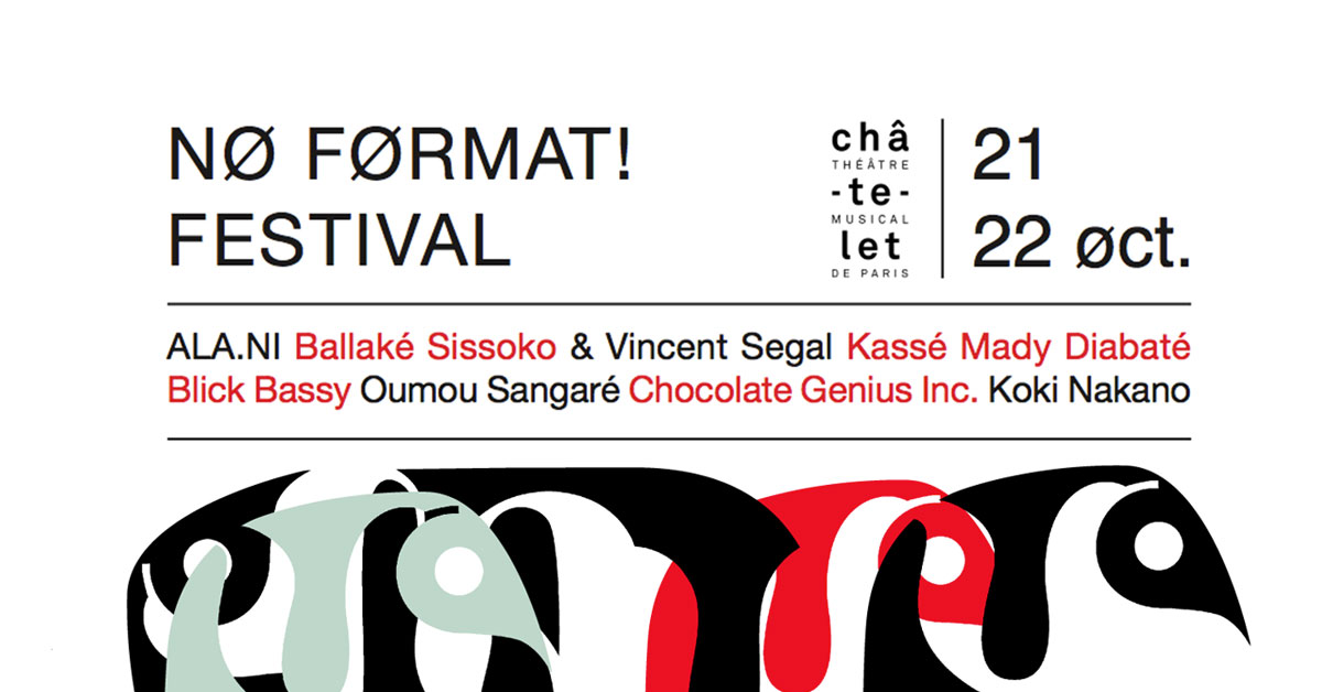 Le label indépendant Nø Førmat s'invite au Théâtre du Chatelet pour une carte blanche exceptionnelle, construite autour de ses projets actuels et à venir. Au programme de ce week : ALA.NI, Blick Bassy Ballaké Sissoko et Vincent Segal, Koki Nakano, Chocolate Genius Incorporated, Kassé Mady Diabaté, Oumou Sangaré ...