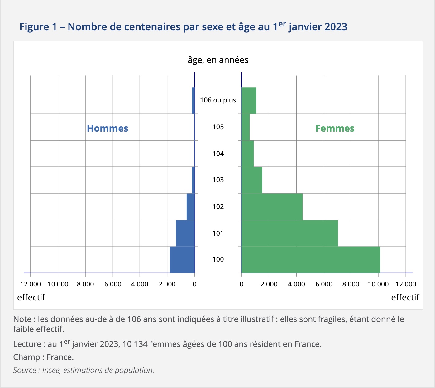 À tout âge, la mortalité des femmes est plus faible que celle des hommes. Et les différents chiffres de l’Insee sont là pour nous le prouver. En 2023, parmi les 30 000 centenaires, seulement 4 300 sont des hommes. À titre de comparaison, la France comptait déjà 4 400 femmes centenaires en 1994.