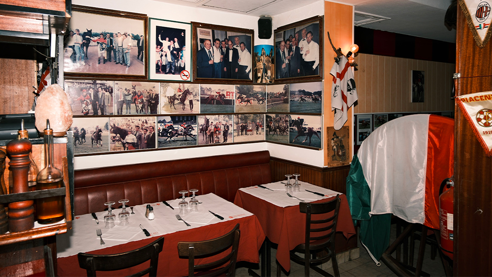 En plus de la qualité des assiettes, ce qu’on retient, à la Scuderia del Mulino, c’est une ambiance unique, chaleureuse et familiale. Entre clientèle locale fidèle, qui s’étend aujourd’hui sur plusieurs générations, spectateurs sur leur 31 venus s’offrir un moment de plaisir avant d’aller au Moulin Rouge, touristes italiens en grand nombre (gage évident de la qualité de l’établissement), ou encore fans de courses hippiques venus rendre hommage à la grande passion du fondateur du lieu, les personnes et les histoires se mêlent dans une décoration unique. È perfetto !