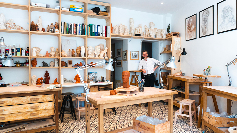 Conscient de cette « appétence grandissante de la société pour les activités manuelles », il décide de puiser dans ses années d’expérience comme plasticien au Petit Palais pour se lancer et ouvrir son atelier l’an dernier. Depuis, il y donne des cours de sculpture et de dessin. Sur fond d’airs de jazz, il enseigne à ses élèves différentes techniques de modelage en fonction de leurs projets. Ici, pas de cadre rigide, seules l’ouverture, la bienveillance et la polyvalence sont de rigueur. « J’ai une philosophie assez ouverte, je m’adapte pour que leurs créations soient en écho avec leurs résonances. »