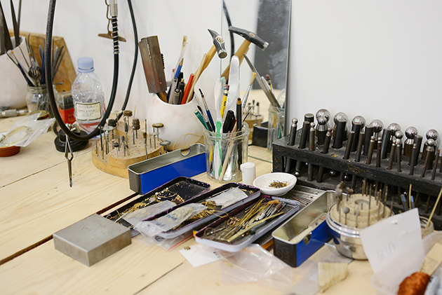 « Bienvenue dans notre atelier ! ». Pierre m’accueille avec un grand sourire, et je sais tout de suite en passant la porte que je vais passer un bon moment. Je m’installe devant un établi en bois blond envahi d’outils, de croquis et de pièces de métal. « C’est ici que sont imaginés tous nos bijoux » m’explique Pierre. Derrière lui, deux créatrices sont en plein travail. Leurs gestes sont hypnotiques.