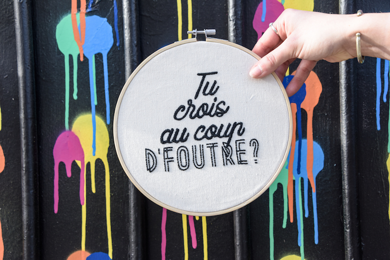 Marie, 28 ans, est une brodeuse des temps modernes. Ayant pour unique matériel ses mains, une aiguille, du fil noir et un tambour comme à l’ancienne, elle réalise des broderies originales et pleines de charme en plein cœur de Montmartre. Avec ses jeux de mots crapuleux, elle a tapé dans l’œil du Bonbon. Rencontre.