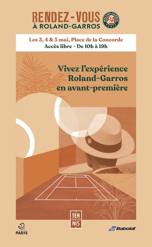 Tout l’univers de Roland-Garros sera recréé du 3 au 5 mai sur la place de la Concorde à Paris. C’est une première pour le tournoi qui est à l’initiative de cet événement. Un village sera installé et tu pourras y explorer plusieurs univers autour de Roland-Garros.
