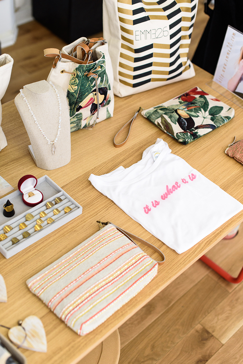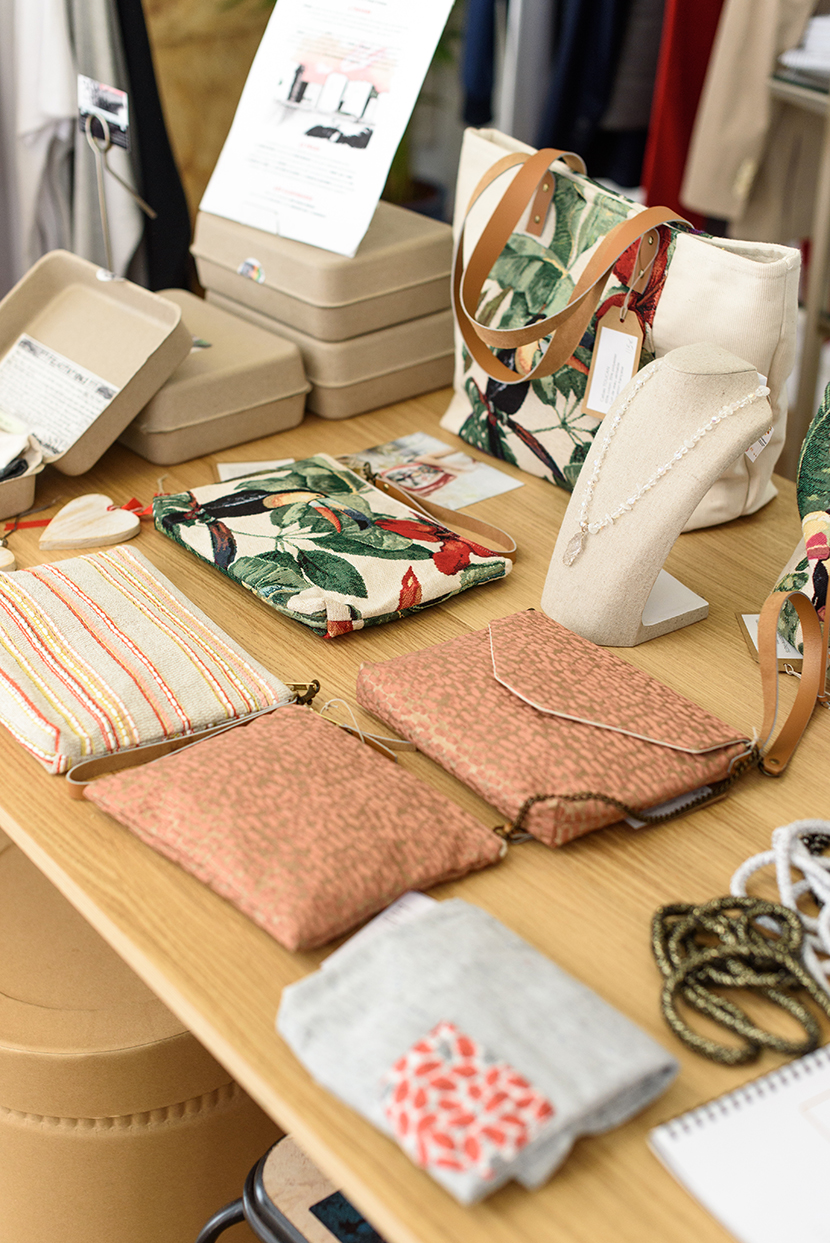 Comme plus on est de fous plus on rit (et plus on a de choix), elle a décidé d’ouvrir ses portes aux autres créateurs, qui s’y installent entre une semaine et deux mois. Pour faire partie de l’aventure, il faut être sympa, talentueux, produire en série limitée, de manière artisanale, respecter l’environnement et avoir un peu la tête dans les étoiles, comme Marie. Parmi les derniers petits chanceux à avoir élu domicile ici, il y a la jeune marque Gastby Paris, conçue en Europe, qui habille les hommes les plus cool ; Laure Derrey qui nous coiffe avec ses bandeaux ethniques faits à Paris ; Imu, jeune créatrice talentueuse ; ISSI BÂ et ses sacs imprimés colorés ou encore Baltimore Paris, les révolutionnaires salopettes 2 en 1.