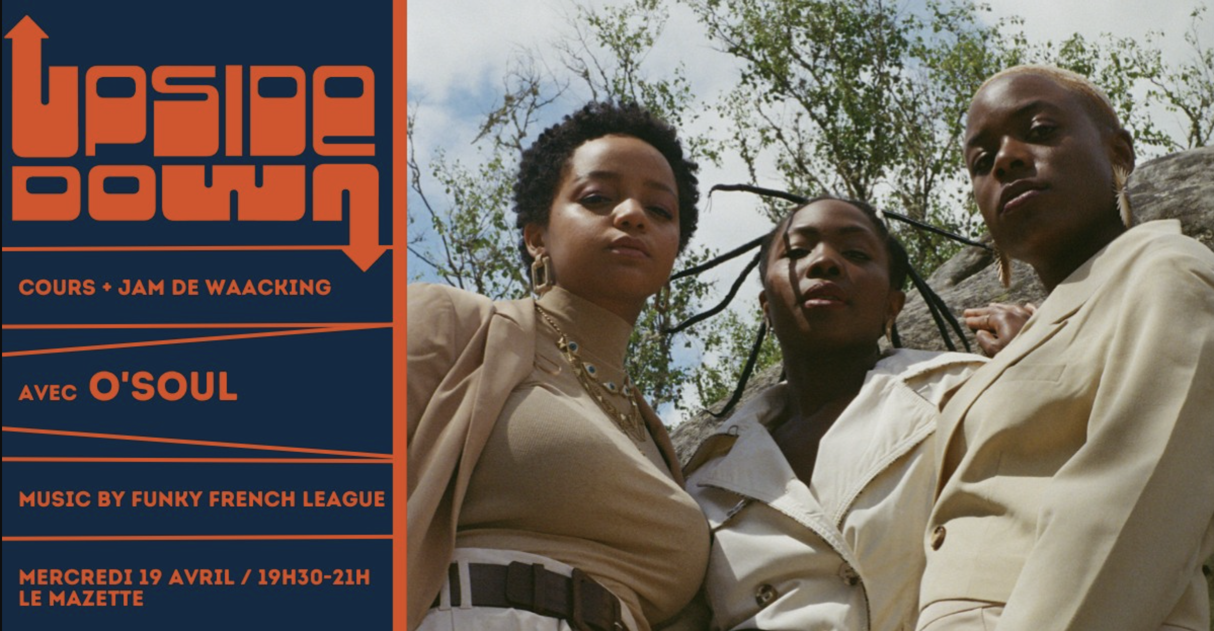C'est le trio O'Soul – Tine, Mariana, Samtwo – accompagné des DJ sets de Funky French League qui sera en charge d'ouvrir le bal des soirées "Upside Down" au Mazette. Au programme, la découverte du waacking, cette danse née dans les clubs – à l'instar des social dance qui ont fait naître des mouvements artistiques dans les communautés queer, afro et latino-américaines comme le locking, le voguing ou la house... Deux mercredis par mois, le bateau accueillera donc des workshops et des jams de danse avec des guests toujours plus dingues.