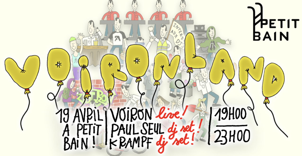 Fervent défenseur du live et des genres oubliés, Voiron explore à chacun de ses projets et ses sets l'acid, la gabber, la rave ou encore la hard house, toujours avec cette touche d'humour façon géné Internet qui le caractérise. Un petit tour du côté de ses tracklists vous fera forcément sourire... Le 28 avril, le producteur revient avec un nouveau projet sur l'excellent label Analogical Force qu'il défendra sur scène ce mercredi. Les pensionnaires de Casual Gabberz, Krampf (DJ set) et Paul Seul (DJ set) seront à ses côtés pour parfaire la soirée.