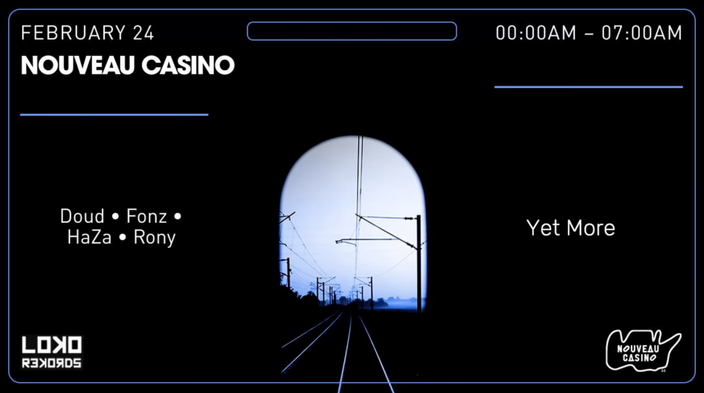 Yet More, HaZa, Fonz, Doud et Rony seront aux commandes de cette soirée exceptionnelle à l'incontournable Nouveau Casino. Les cinq DJs proposeront une musique progressive emprunte de mélodies tribal sur fond de percussions deep et envoûtantes. Si vous êtes fans de Âme, Dixon ou Solomun, foncez ! Cette soirée est faite pour vous.