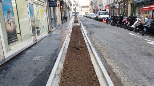 La dernière vient de la rue Manuel, petite chaussée coincée à deux pas de la rue des Martyrs. La Mairie a supprimé une rangée de stationnement de voitures et créé des bacs enterrés sur le trottoir, rapporte l’association actionbarbes. Sur lesdits bacs a été installé un arrosage automatique recouvert de terre et plantées différentes semences…qui n’attendent qu’à pousser !
