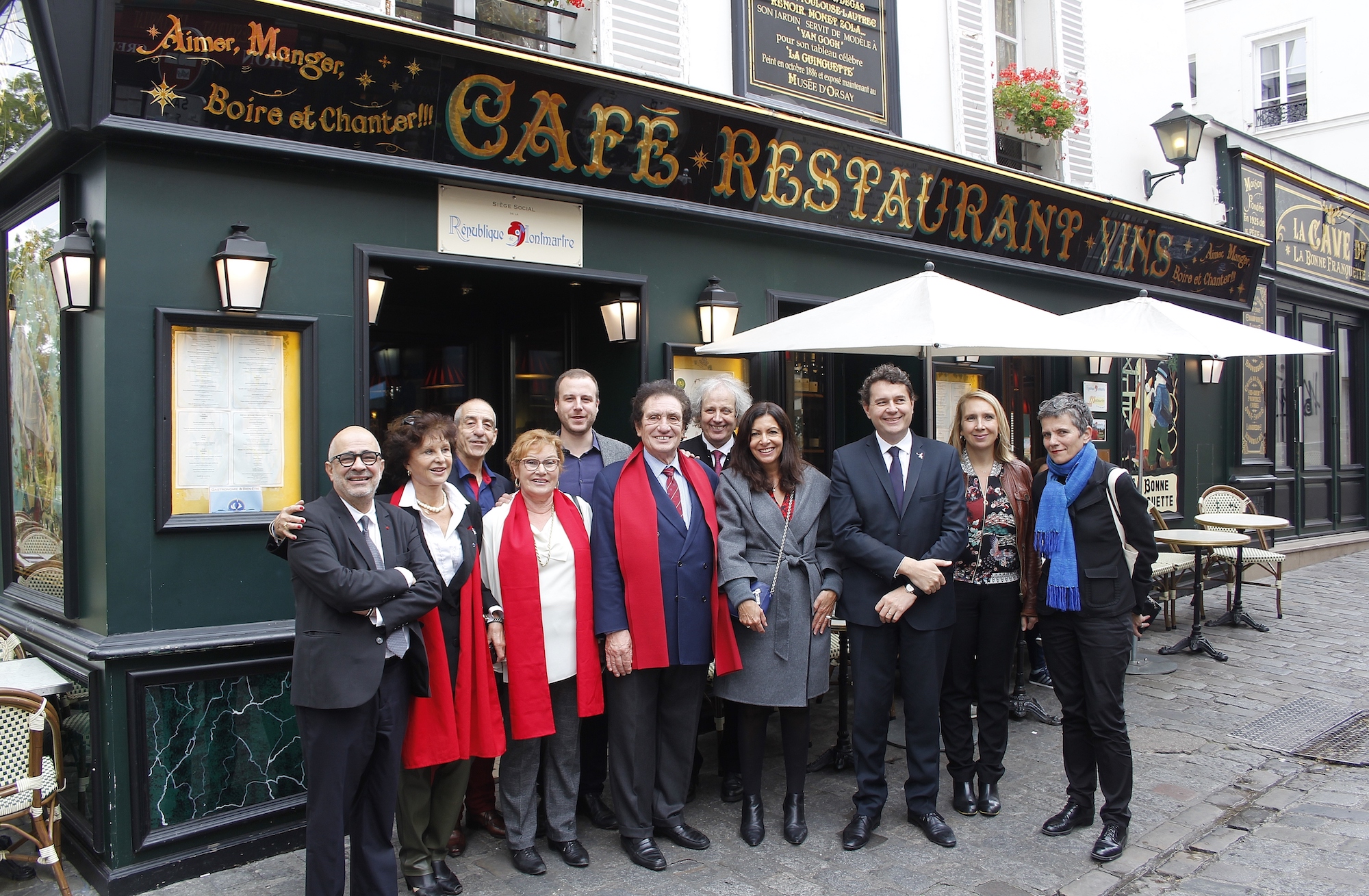 Anne Hidalgo en compagnie de la République de Montmartre devant leur fief, A la Bonne Franquette © Frédéric Loup