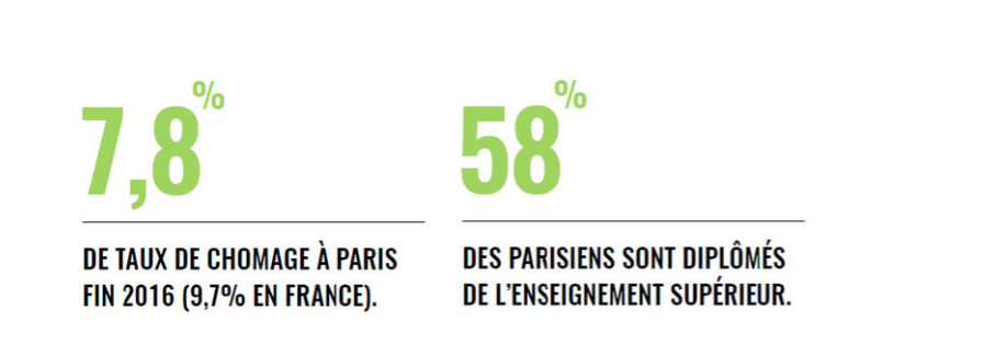 A Paris, 49% de la population a un emploi. On note une très belle progression du taux d’activité chez les femmes depuis 20 ans. Elles seraient 75% âgées de 16 à 64 ans à être actives aujourd’hui contre 70% en 1999. Un quart serait à la recherche d'un emploi, inactif ou retraité.