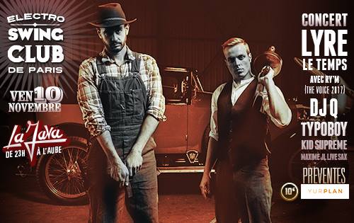 L'électro swingue club de Paris invite le groupe Lyre le Temps pour un show exceptionnel ! Les petits frenchies ont déjà fait sensation lors des derniers solidays, avec leur son électro. Ils présenteront leur tout dernier opus Prohibition Swing, entouré de Typoboy, Maxime Jean-Louis et Kid Suprême.