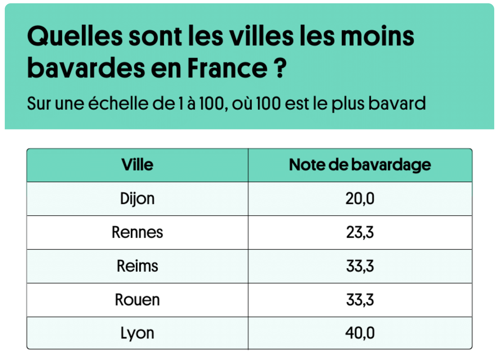 On vous dirait bien que c’est la chaleur du Sud qui influence notre envie de discutailler, mais Strasbourg et Lille sont aussi respectivement en 4ᵉ et 5ᵉ position du classement.