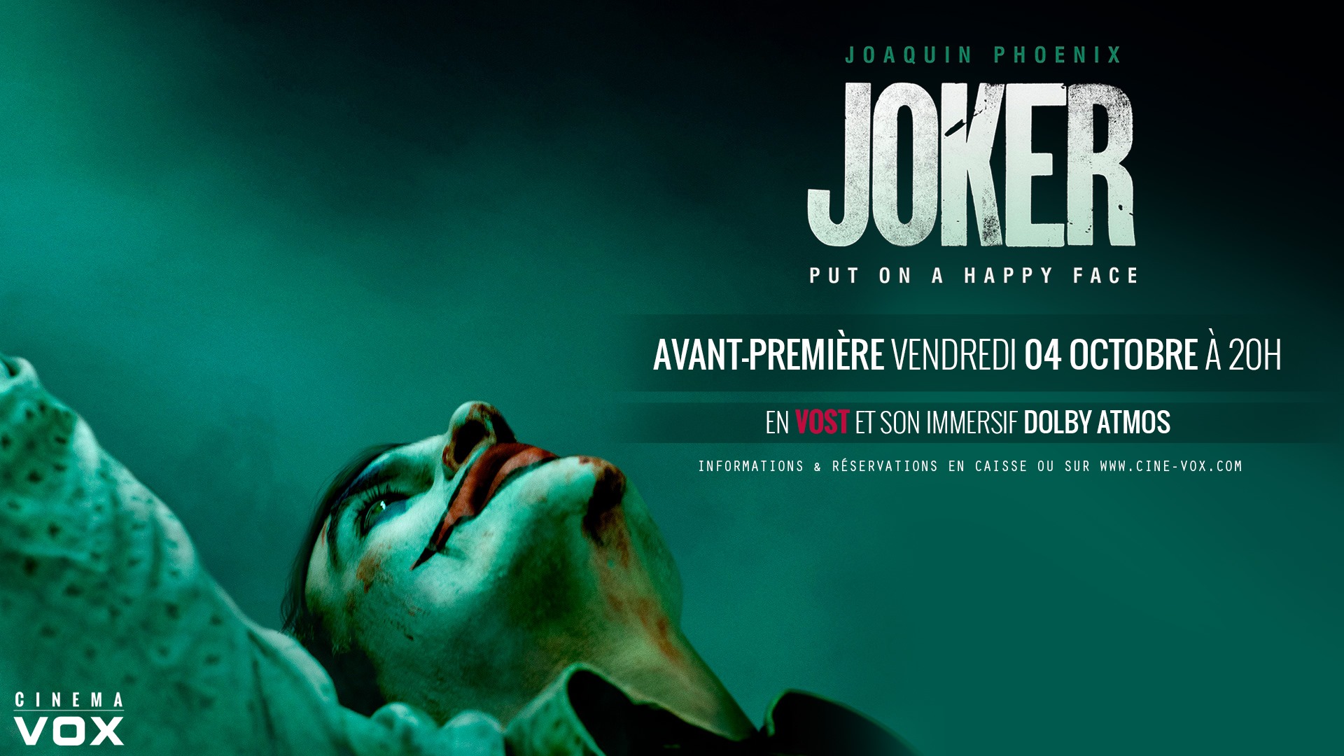 On vous en parlait ici, le film Joker (qui promet d'être bien sympa) est diffusé en avant-première au Vox! La première salle étant complète, le cinéma ouvre une seconde salle pour cette avant-première, alors on se dépêche de prendre sa place !