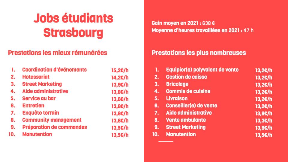 En moyenne, les étudiants strasbourgeois qui travaillent ont gagné 638 € pour 47 heures de travail. Parmi les jobs les plus répandus, on retrouve encore la vente suivie de la gestion de caisse, le bricolage, la cuisine, la livraison, la vente ambulante ou encore la manutention. Un baromètre qui démontre également que les étudiants strasbourgeois ne sont pas les plus gros travailleurs qui soient...