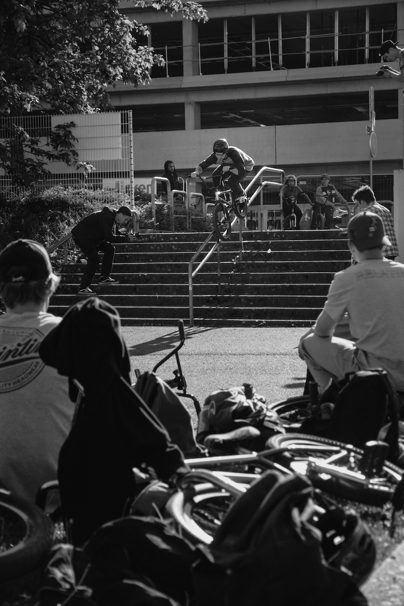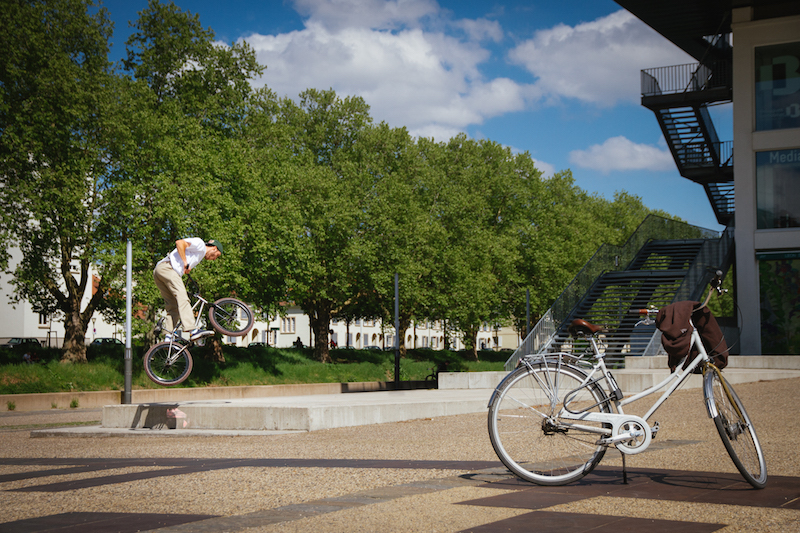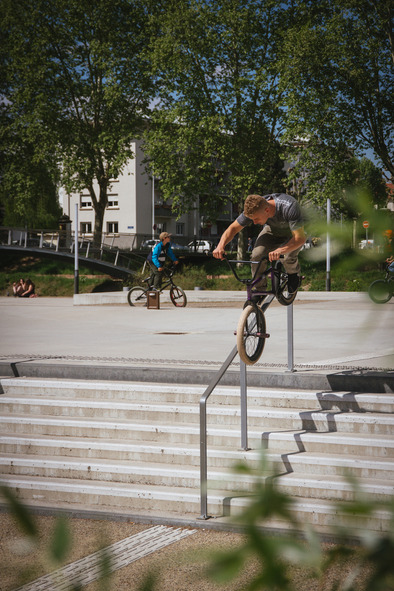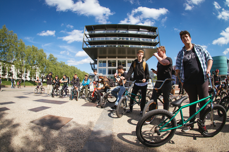 Mardi 1er mai dernier, le crew de BMX street Pavé Est organisait sa première street jam dans les rues de Strasbourg. En tout, ce ne sont pas moins de quarante vélos, quelques skateurs et des dizaines de spectateurs qui se sont retrouvés sur différents spots de la ville, du MAMCS à Rivétoile en passant par la piscine du Wacken.