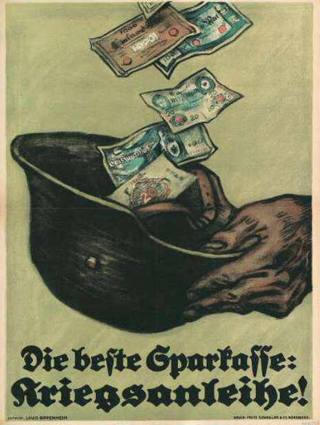 Parce qu'il faut bien que quelqu'un finance la guerre, voici un exemple parmi d'autres d'affiches qui demandent expressément aux gens de participer. La propagande est là pour assurer le succès des émissions d'emprunt.