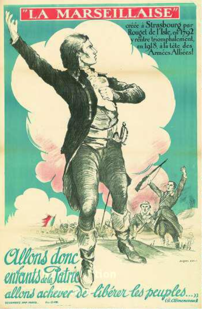 La victoire et la Marseillaise sont personnifiées par Rouget de Lisle qui, après avoir composé le chant patrotique en 1792, reviendrait une seconde fois à Strasbourg en 1918, vainqueur et à la tête des Armées alliées.