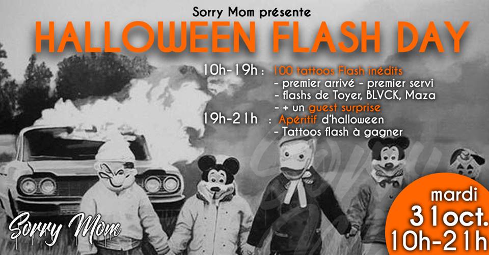 Le salon de tatouage Sorry Mom (qu'on peut qualifier de Tattoo club, aussi), maintenant bien installé dans le paysage toulousain, commence à proposer des événements plutôt cools en plus de son activité principale. Après un opening très réussi il y a quelques semaines, c'est cette fois dès 10h du matin que vous serez attendus dans le salon de Max Toyer. Au programme Tattoo Flash, tirage au sort des vainqueurs du concours (consignes précisées dans l'event, en suivant le lien juste en-dessous) et apero. Une manière cool de commencer sa journée puis de la finir.