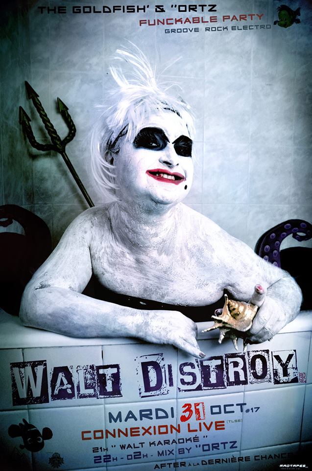 Excentricité et bon goût seront au programme ce soir et pour une bonne partie de la nuit si vous êtes parmi les plus courageux. Walt Distroy, le nom de la soirée est en lui-même un programme qui donne envie. Des méchants de Disney, du karaoké pour les vrais fans et un mix avec videoprojections, on ne devrait pas trop s'ennuyer au Connexion. La fermeture, comme d'habitude, aura lieu vers 2h mais un after est prévu, à la Dernière Chance. Alors vous marchez maximum 10 minutes et vous continuez la soirée jusqu'à l'aube. On vous souhaite simplement de ne pas avoir de repas de famille à midi le 1er Novembre. Vous pourrez de toute façon toujours dire que vous êtes déguisé en zombie, le contexte s'y prête pour une fois.